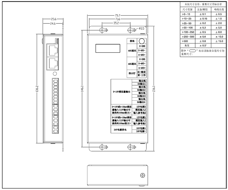 0-10V或4-20mA模擬量輸入(12V輸出可提供約100mA能力) | 12V電源2 |