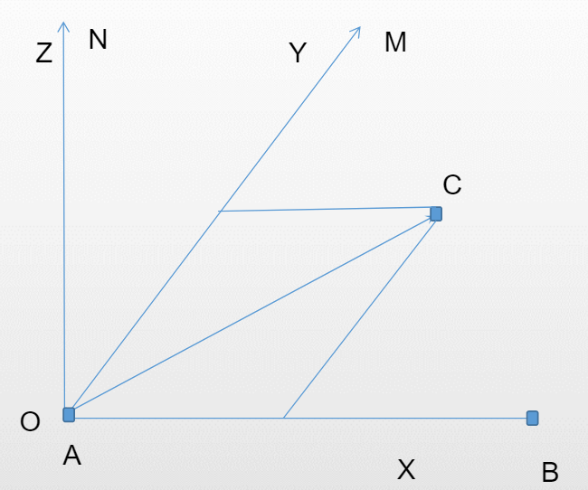 以A為原點(diǎn),AB為X正向,AM為Y正向,AN為Z正向的坐標(biāo)系就可以建立,這就是工作臺(tái)坐標(biāo)系。