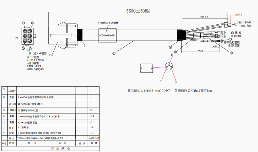 華成系列伺服電機動力線加磁環,采用三孔磁環,操作如下: