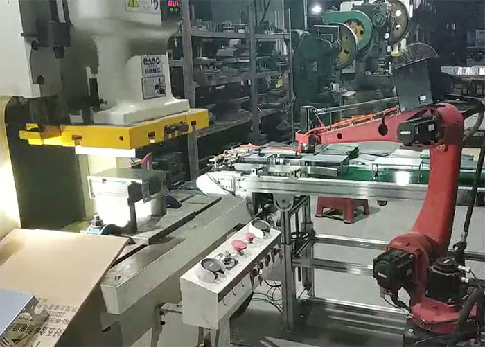 針對機器人自動化沖壓生產線,華成工控自主開發了沖壓四軸關節機器人控制系統,專用在沖床壓力機的自動化控制器,可以支持多臺組合連線沖壓,滿足各種沖壓、拉伸、成型等工藝要求,實現翻轉、打廢料、側掛或斜放、堆料等功能,從而達到大幅度節省人工成本的目的。