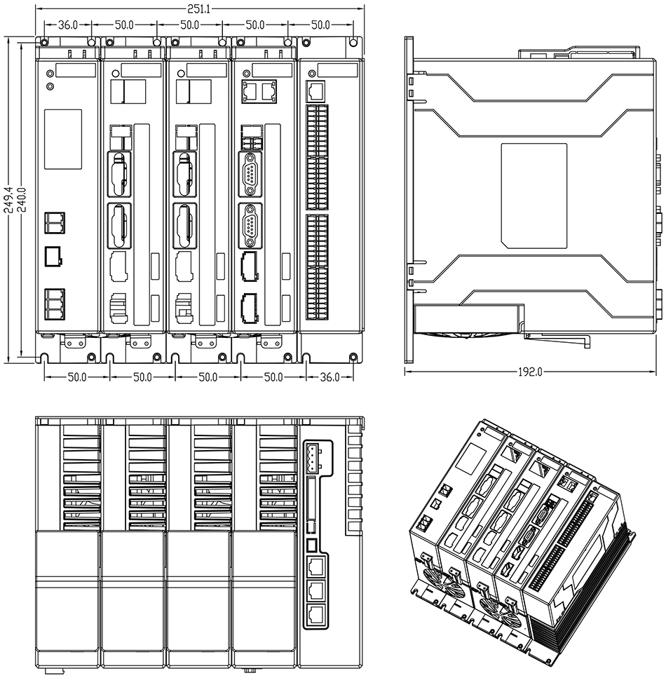 3)省略號處單元模塊相同,系統軸數可選擇2軸、3軸、4軸、5軸、6軸、7軸、8軸。端口連接方式相同。
